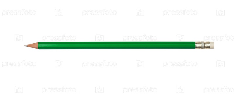 Карандаш зеленого цвета с ластиком на белом фоне изолированы