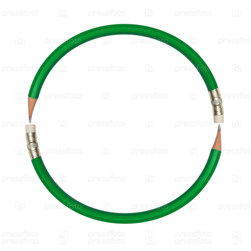 Абстрактный узор из двух изогнутых зеленых карандашей в круге на белом фоне