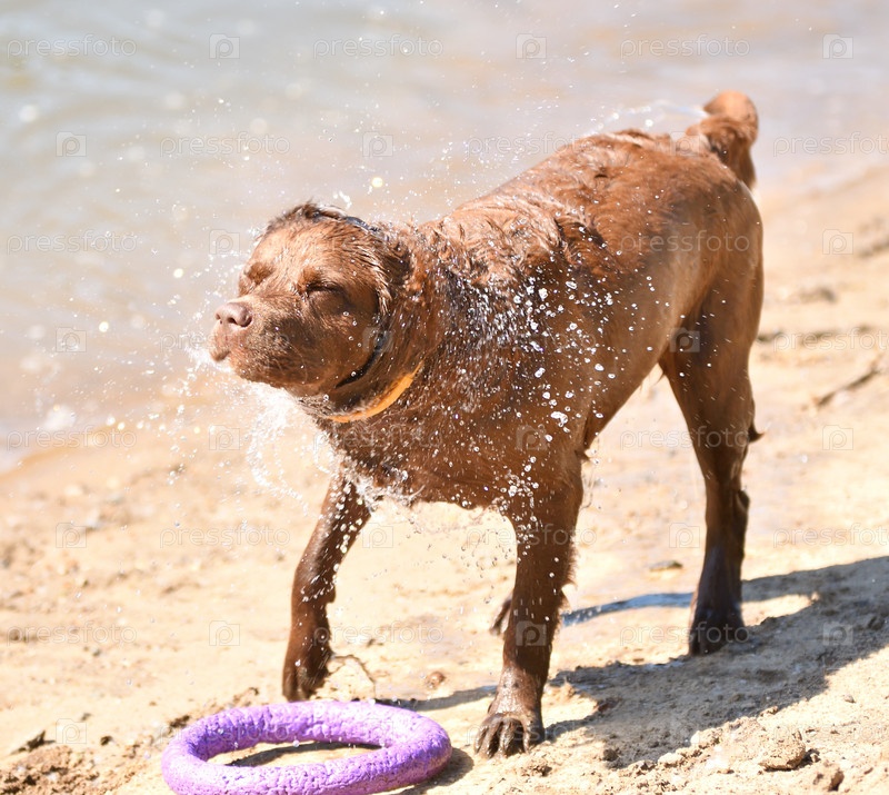 Лабрадор на прогулке у реки