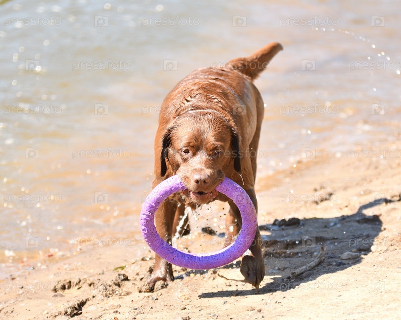 Лабрадор на прогулке у реки