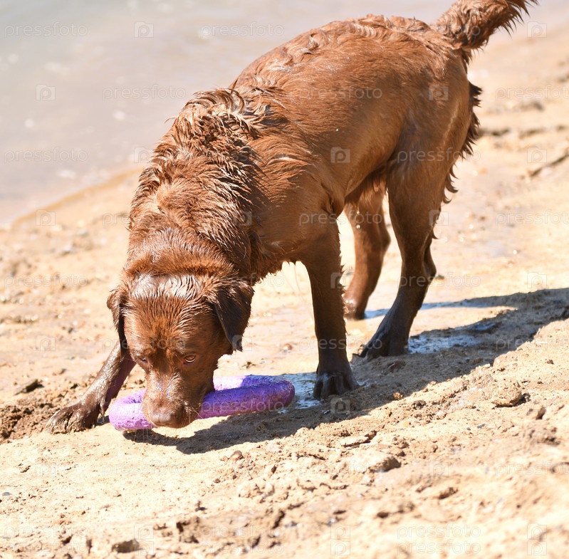 Лабрадор на прогулке у реки