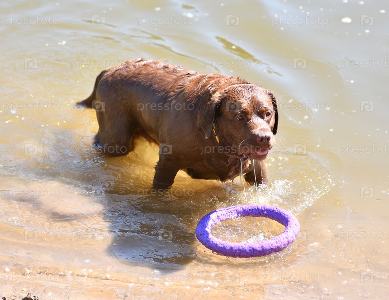 Лабрадор на прогулке у реки