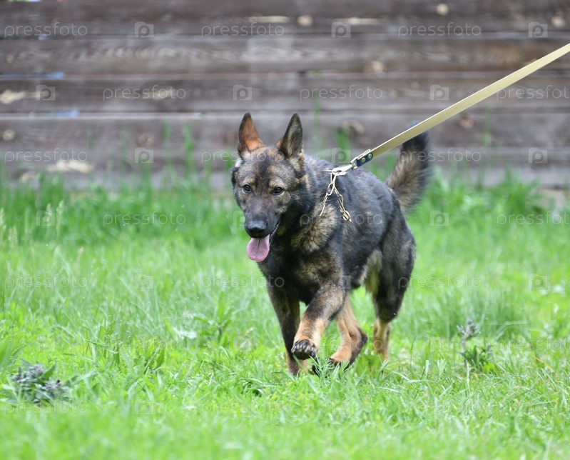 Собака породы Гердер или бельгийская овчарка на прогулке