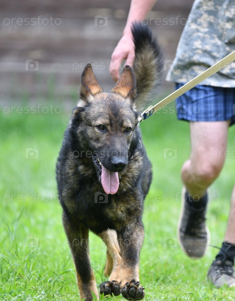Собака породы Гердер или бельгийская овчарка на прогулке