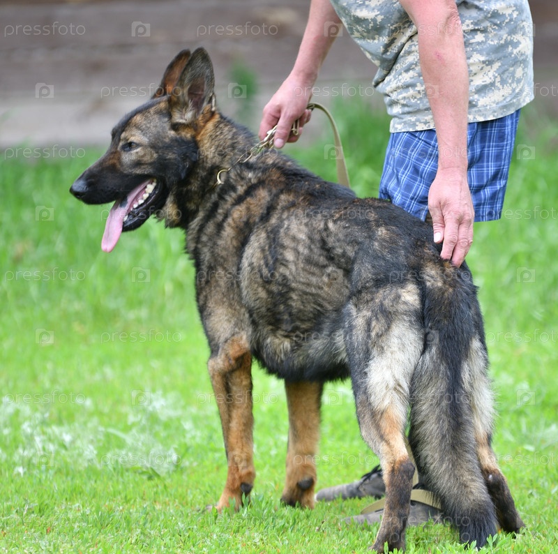 Собака породы Гердер или бельгийская овчарка на прогулке