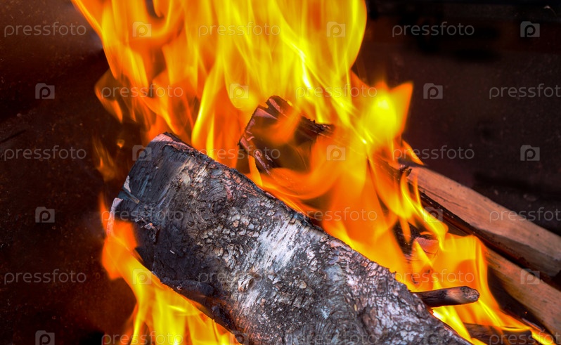 Пламя над горящими бревнами