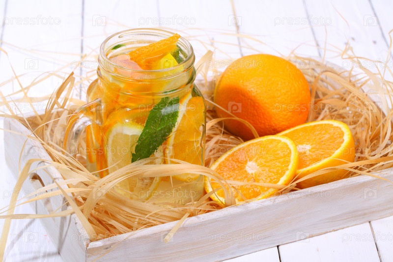 Цитрусовый коктейль на белом деревянном столе