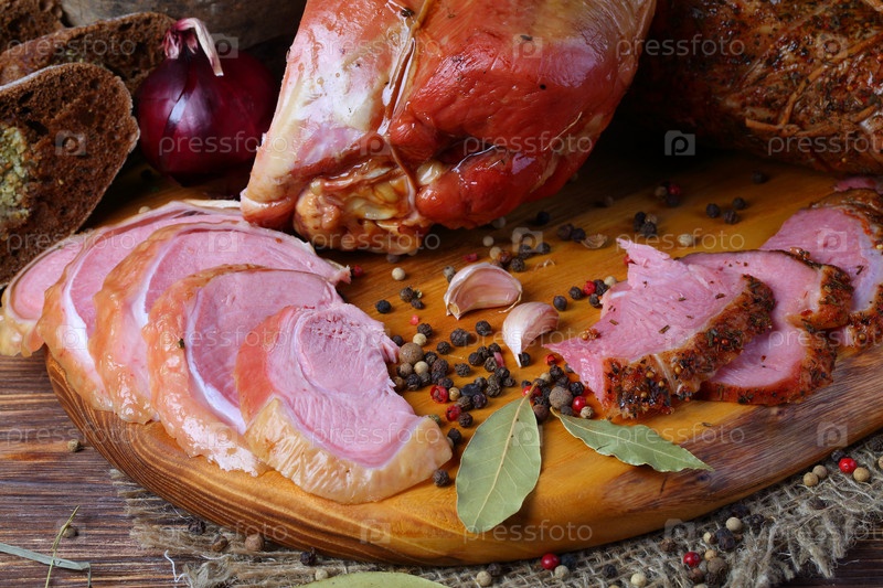 Копченые индюшиные голени на деревянном фоне