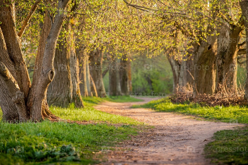 Путь переулка с зелеными деревьями в лесу. красивая аллея, дорога в парке. Тропинка, природный туннель, Путь через летний лес