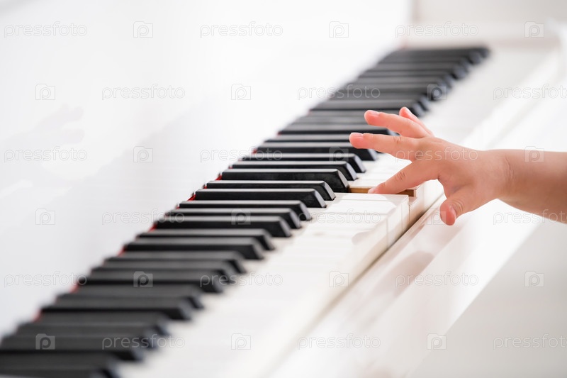 Выборочный фокус на детские пальчики и клавиши пианино для игры на пианино. Есть музыкальный инструмент для концерта или обучения музыке