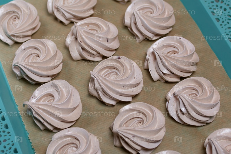 Домашний зефир сухой на подносе. На белом фоне