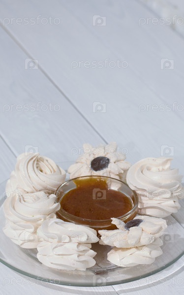 Зефир домашний. Абрикосовое варенье. На белом фоне. Крупный план