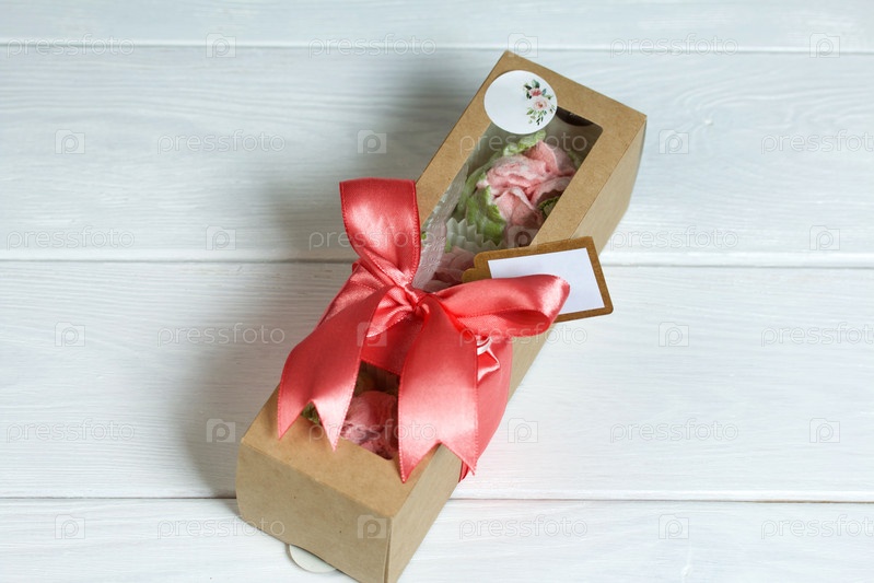 Зефир ручной работы в подарочной упаковке. Зефир в коробке, перевязанной лентой. Зефирные тюльпаны. На белых досках