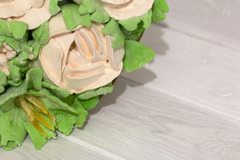 Зефирный букет. Букет зефирных цветов. На белом фоне. Крупный план