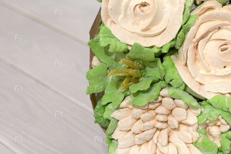 Зефирный букет. Букет зефирных цветов. На белом фоне. Крупный план