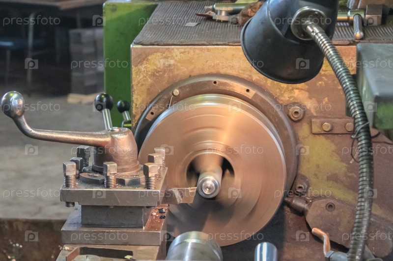 Обработка металла на старом токарном станке крупным планом