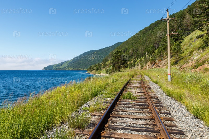 Кругобайкальская железная дорога, Россия. старая Транссибирская железная дорога на берегу Байкала