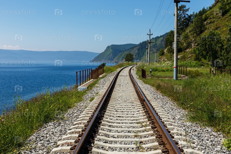 Кругобайкальская железная дорога. Железная дорога проложена вдоль берега Байкала. Россия