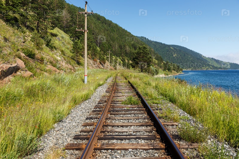 Кругобайкальская железная дорога, Россия. старая Транссибирская железная дорога на берегу Байкала
