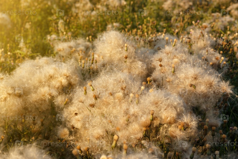 Цирсиум полевой. Поле с увядшим чертополохом ползучим. Полевые цветы в поле. Ползучий чертополох с пушистыми семенными головками