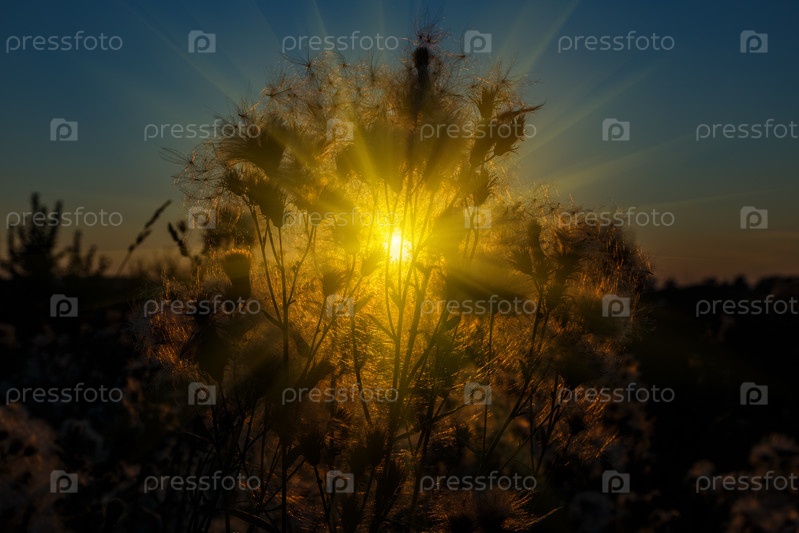 Дикая трава в природе на фоне заката. силуэт травы на фоне заката