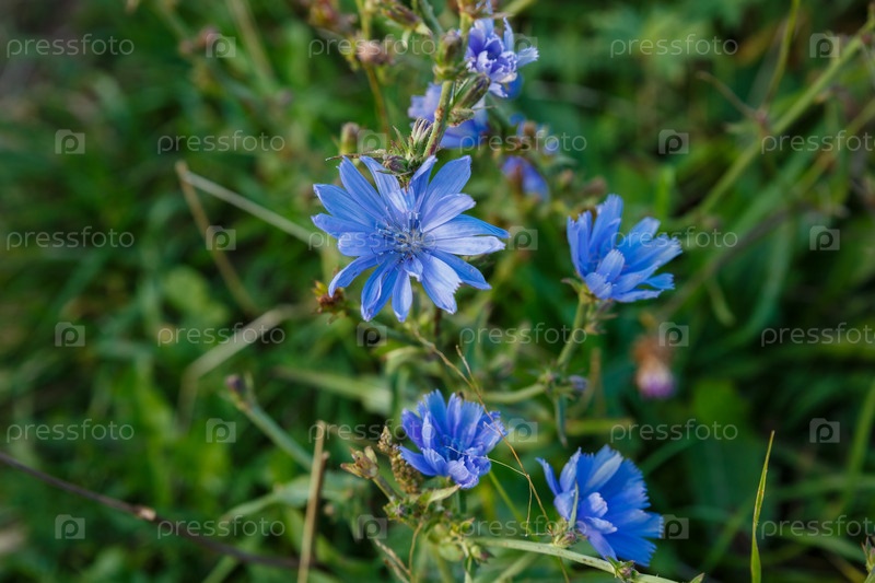 Цикорий обыкновенный или Cichorium intybus.Синие цветы цикории, растущие на лугах