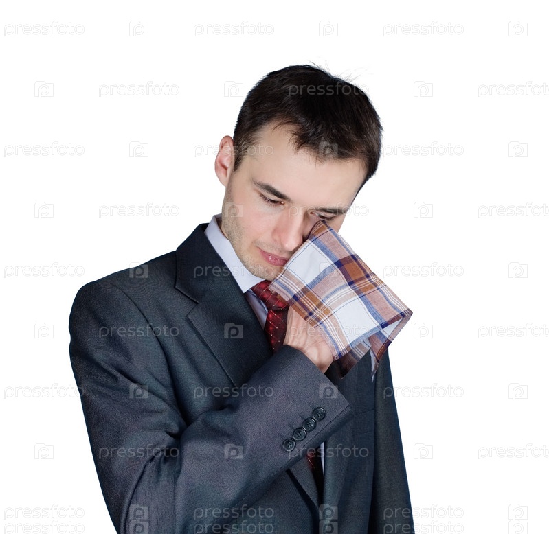 Печальный бизнесмен вытирает слезы