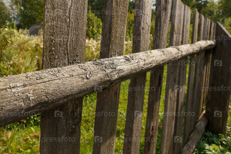 Старый деревянный забор из досок. Крупный план элемента забора