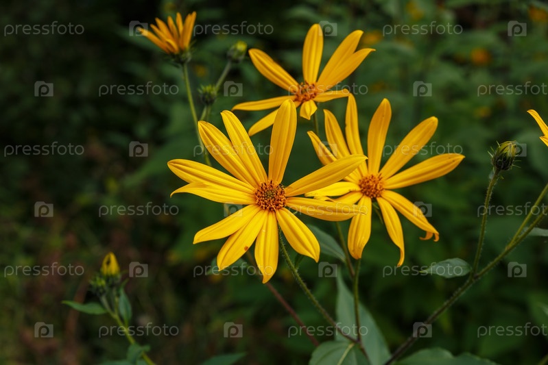 Цветы топинамбура. Цветущие желтые цветы на лугу