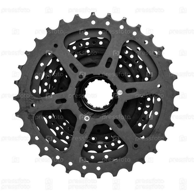 Новая велосипедная кассета черного цвета на белом фоне