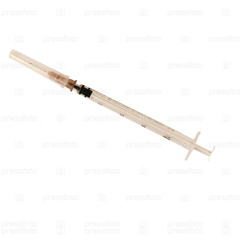 1 мл медицинский маленький пластиковый стерильный шприц с иглой, изолированной на белом фоне