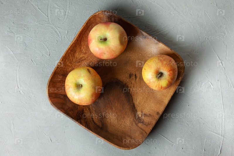 яблоки в деревянной тарелке