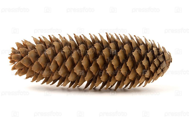 Сосновая шишка, изолированные на белом фоне. Вид сбоку