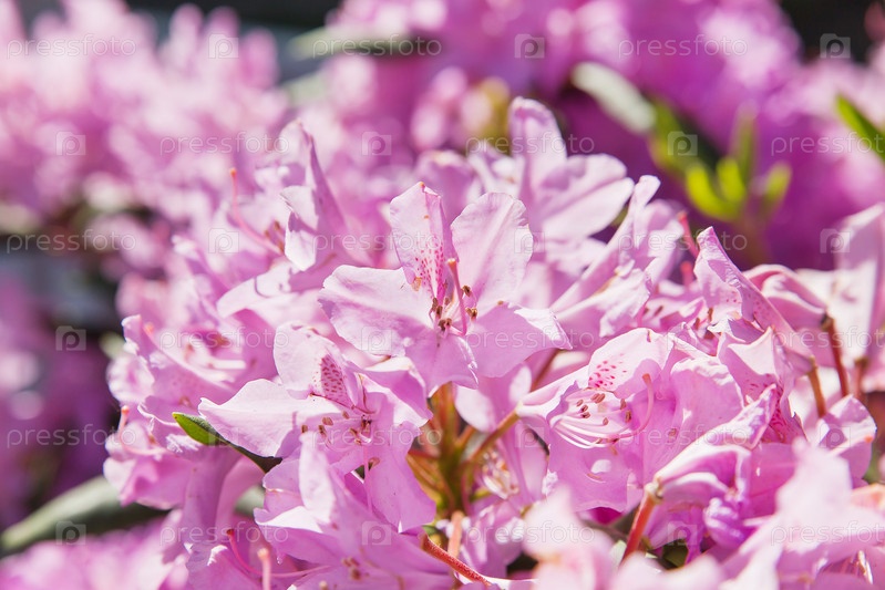 Ярко-розовый рододендрон в саду. Весенний фон с густо цветущим кустарником