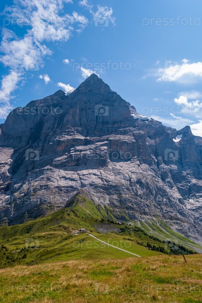 Красивый альпийский пейзаж с пиком Веттерхорна, Гриндельвальд Бернский Оберланд Швейцария Европа