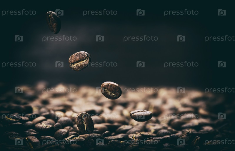 Крупный план падения кофейных зерен