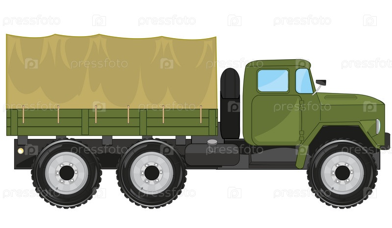 Грузовой автомобиль с корзиной, покрытой брезентом