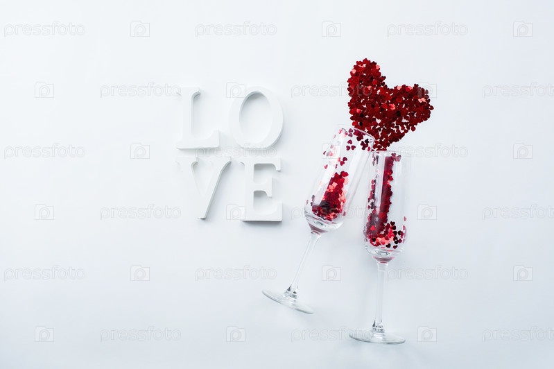 Очки конфетти в форме сердца на белом фоне. Плоская планировка, вид сверху. Концепция праздника и празднования