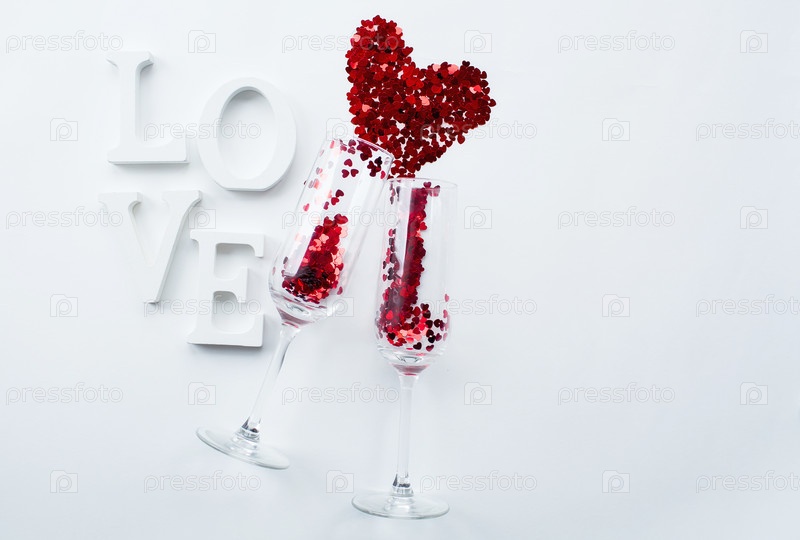Очки конфетти в форме сердца на белом фоне. Плоская планировка, вид сверху. Концепция праздника и празднования