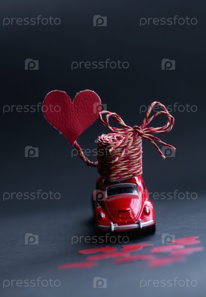 Москва, Россия - январь 2020 г.: Доставка красного ретро игрушечного автомобиля