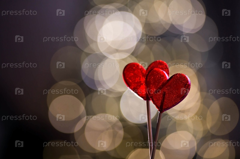 Два леденца в форме красных сердец. Конфеты на палочке на фоне красивого боке. Концепция любви и День святого Валентина