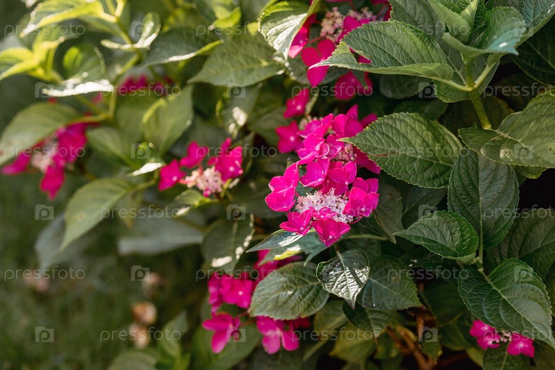 Красивые здоровые гортензии, цветущие красным цветом