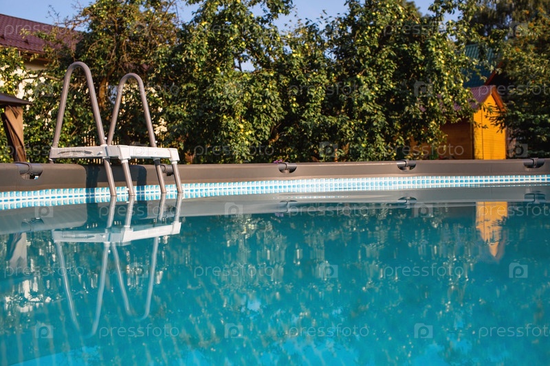 Бассейн с металлическим каркасом для дома и сада. Каркасный бассейн во дворе. Солнечная баня.Установка бассейна. Концепция летнего отдыха и отдыха