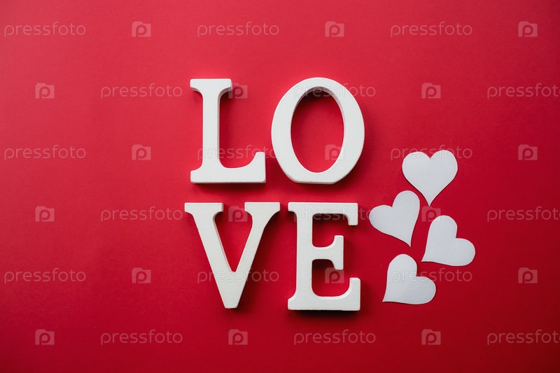Слово любовь белыми буквами на модном красном фоне. С Днем святого Валентина, Днем матери, 8 марта, Всемирным женским днем. Плоская планировка