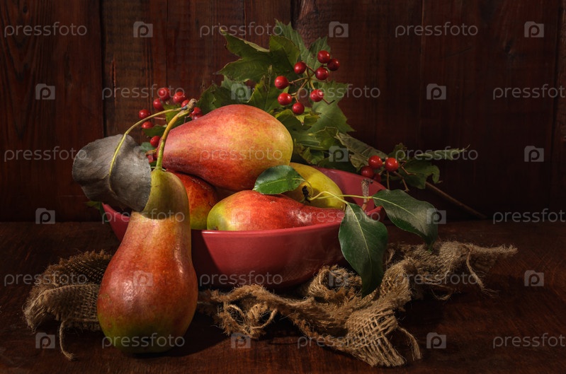 Спелые груши и другие фрукты на темном деревянном фоне в деревенском стиле