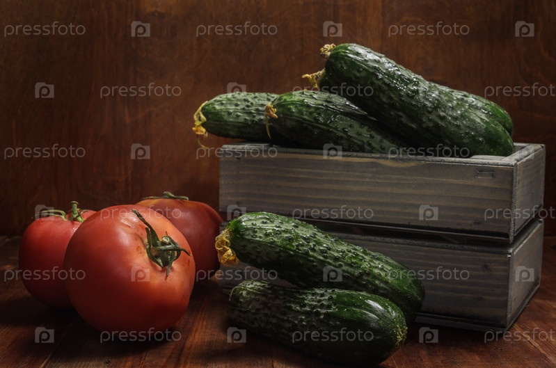 Свежие овощи на темном деревянном фоне в деревенском стиле