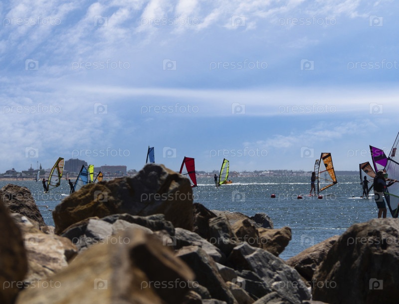 Многие любители виндсерфинга отправляются в морскую бухту для развлечения. Россия Краснодарский край Должанская 05 августа 2020