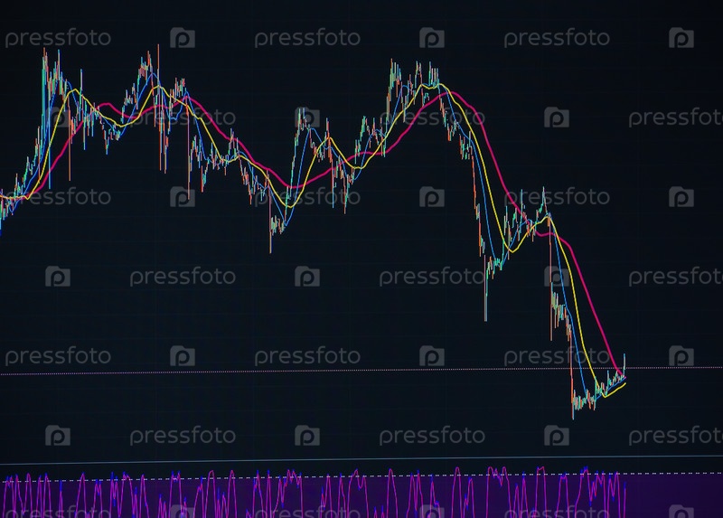 График рынка криптовалют, отображаемый на торговом экране онлайн-инвестиционной платформы. Свечной график с индикаторами, отражающими инвестиционные и финансовые концепции