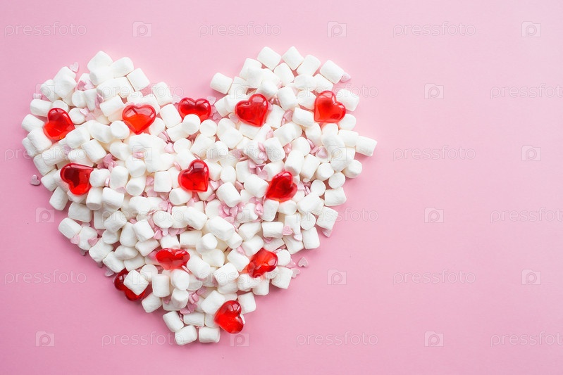 Праздничный фон. Макро фото белого зефира. День Святого Валентина. В портфолио есть больше изображений к 14 февраля