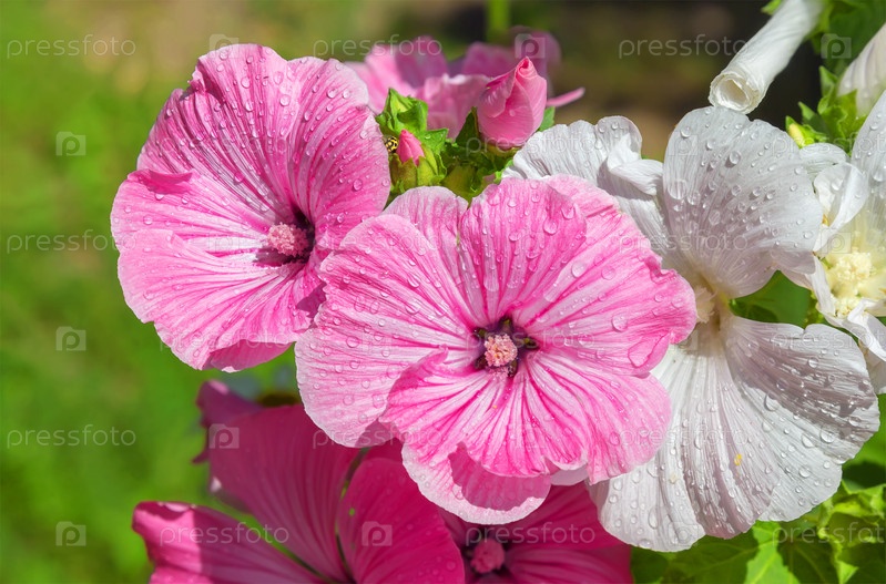 Крупный план розово-белой нежной лаватеры